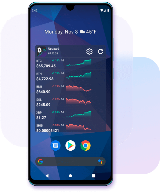 Your crypto list on home screen